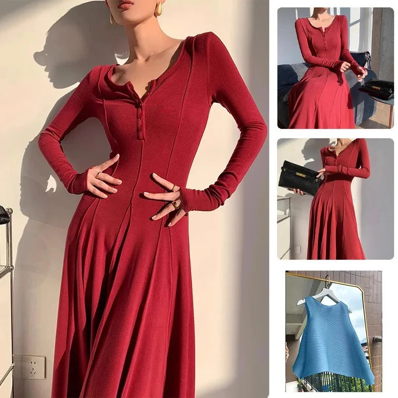 • Fashionable Design : This black knitted dress features a trendy fashion design, perfect for the 2025 autumn season. Its long sleeve and slim fit silhouette enhance your body shape.