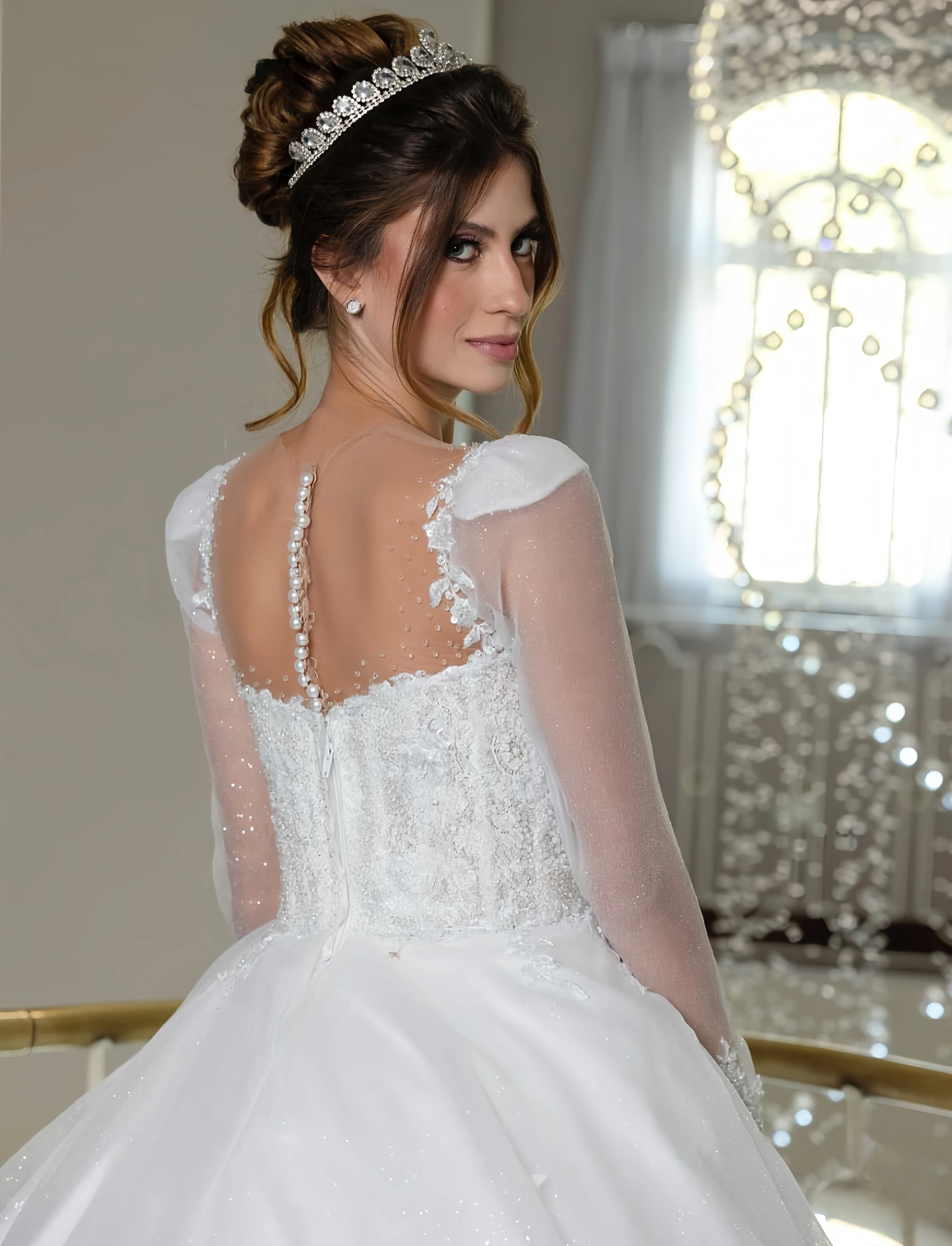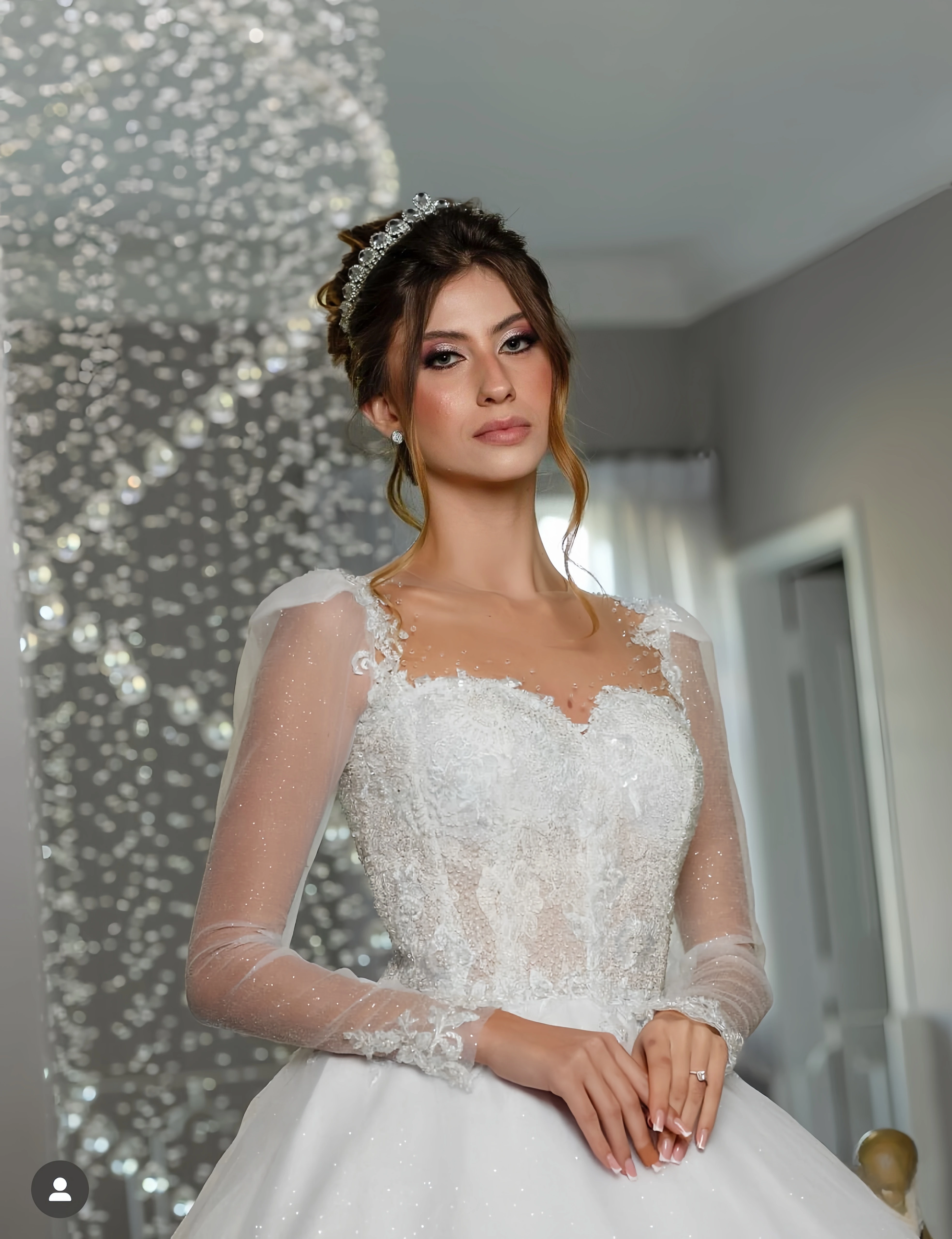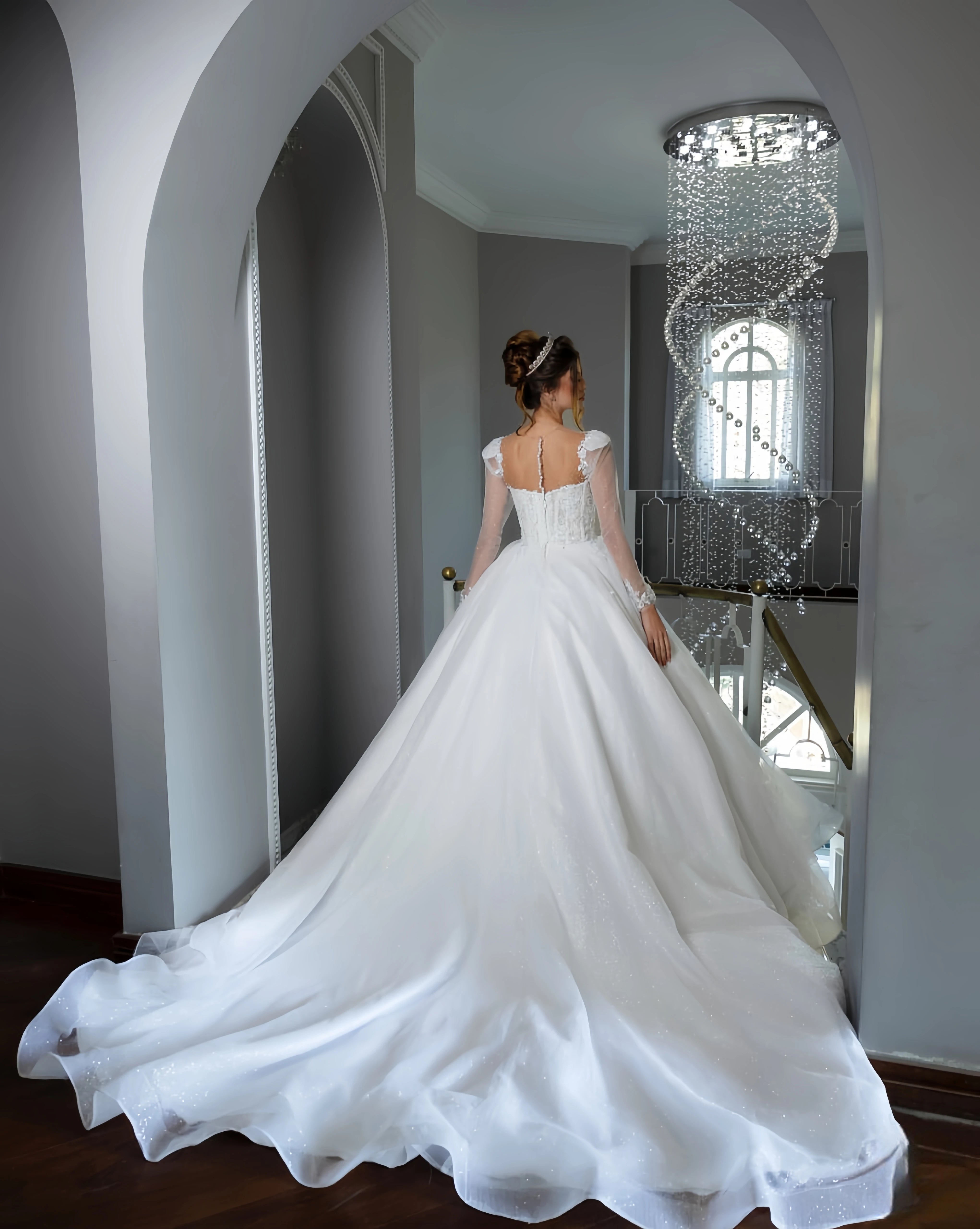 Customzied boat-shaped neckline long-sleeved women's elegant wedding dress Estidos de novia amanda novias amanda novias official