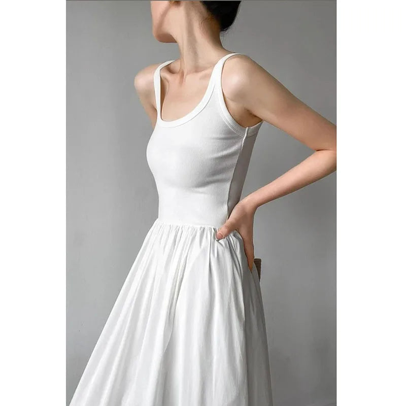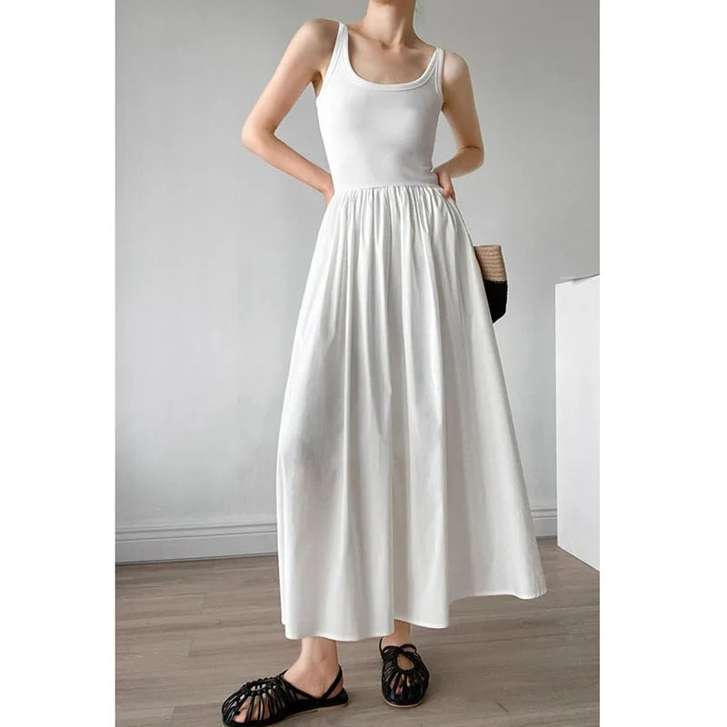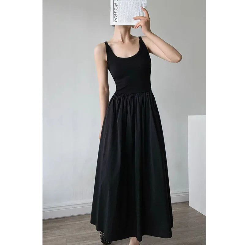 Elegant Knitted Patchwork Long Dresses Women Summer Simple All-Match Beach Strap Dress Korean High Waisted Party Maxi Vestidos