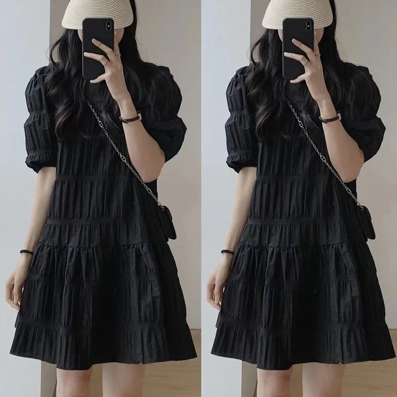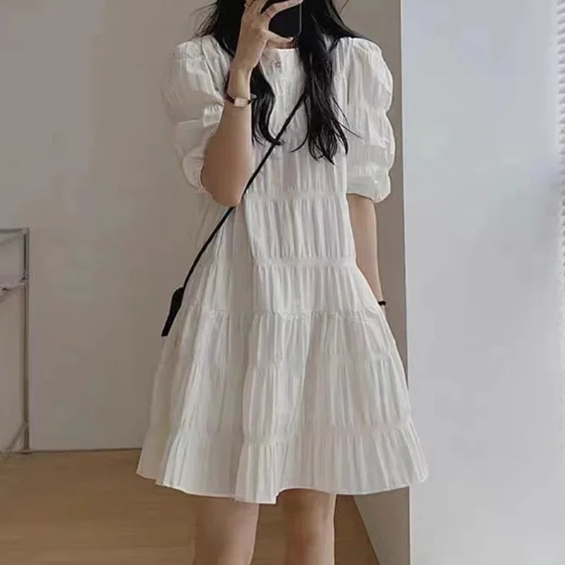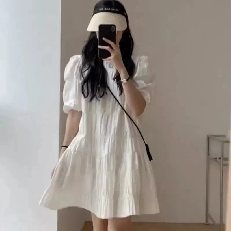 Fashion French Pleaded Dress for Women 2026 Casual Loose Short Sleeve Summer Beach Dress Evening Party White Dresses Y2k Clothes