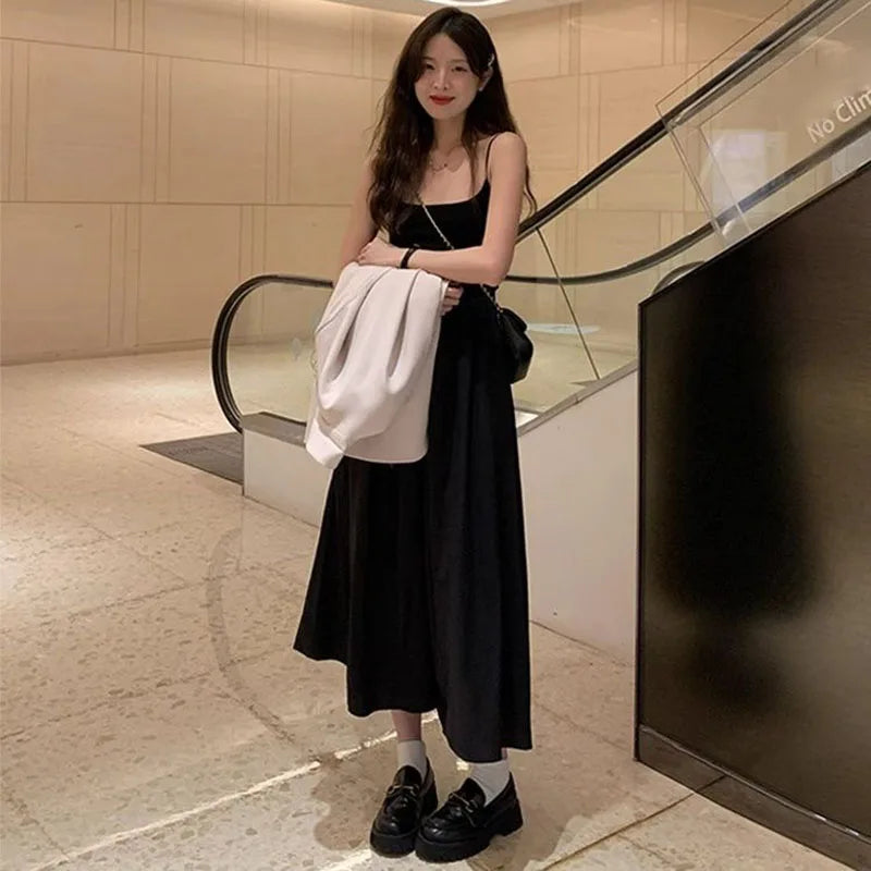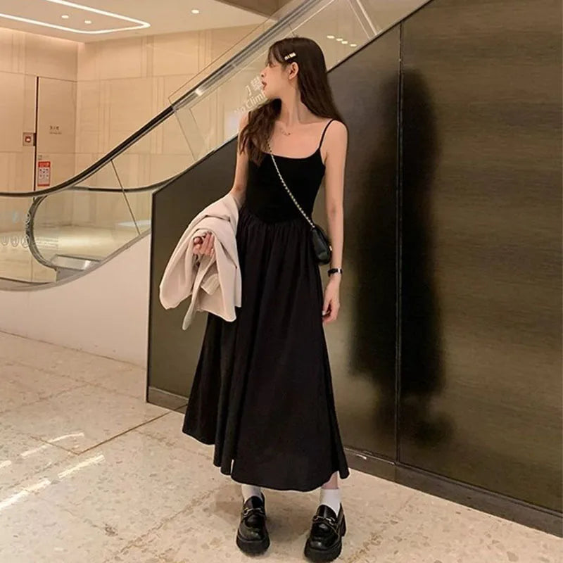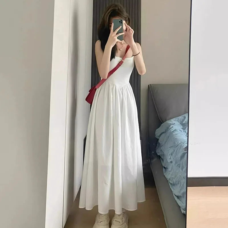 Fashion High Waisted Suspender Dress Female Summer Casual Simple Versatile Long Dresses Women Elegant Streetwear Camisole Dress