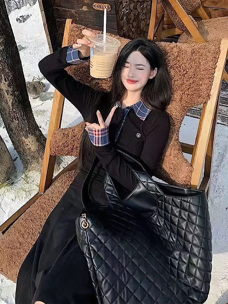 Preppy Polo Neck Knit Plaid Long sleeve T shirt Women False 2 Piece Basic Top V neck Button Blouses Tees 2026 New