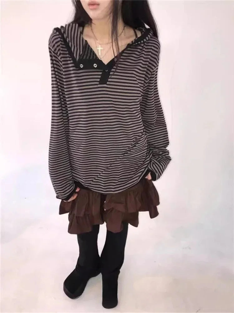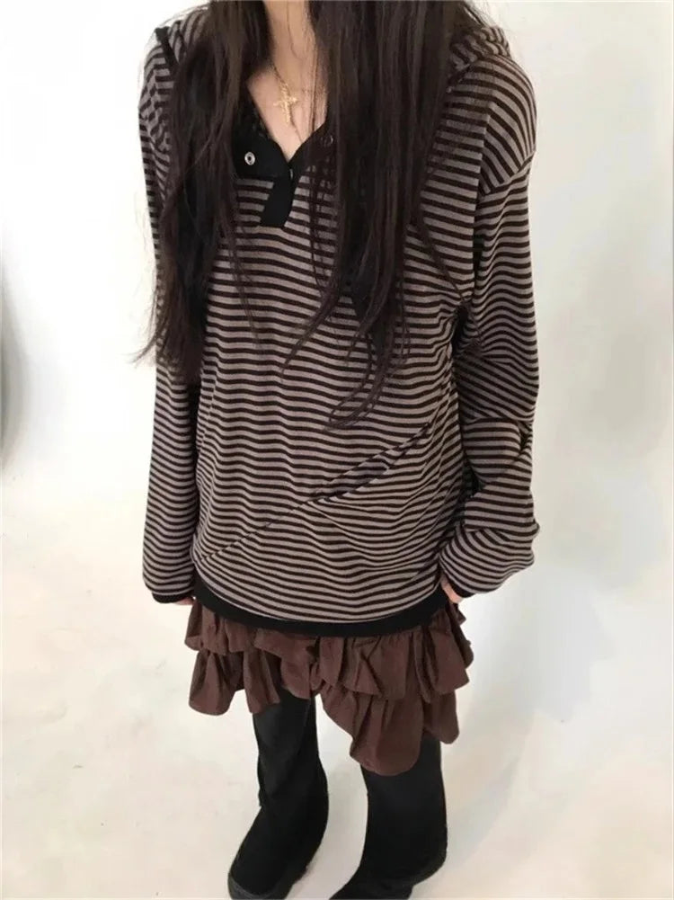 Preppy Style Korean Hoodies Hooded Striped Long Sleeve Sweatshirts 2026 Ropa Mujer Casual Fashion Hoodie Women Clothing Y2k Tops