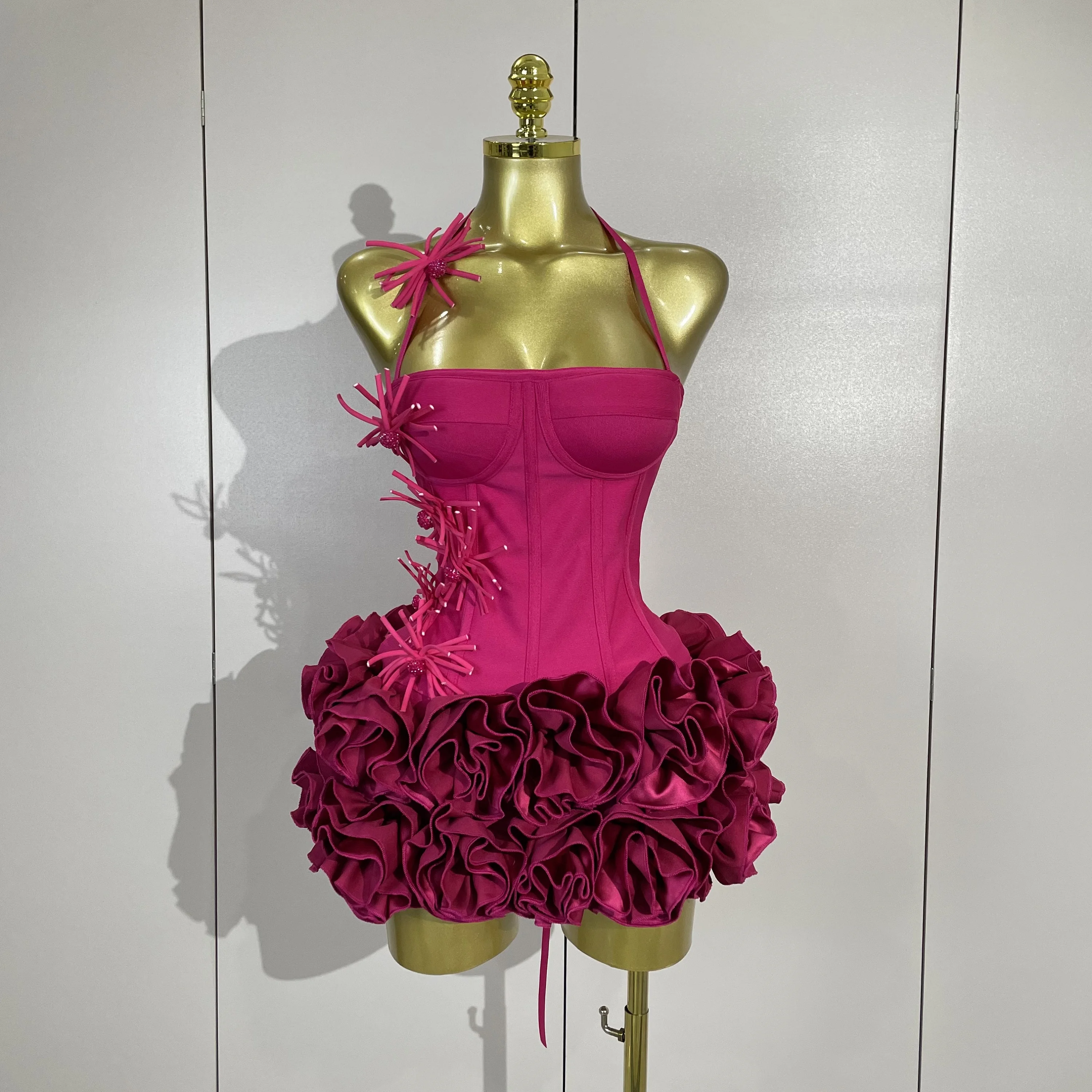 Sexy Halter Prom Gown Celebrity Club Two Piece Set Cocktail Elegant Women Fashion Luxury Birthday Party Red Black Bandage Outfit